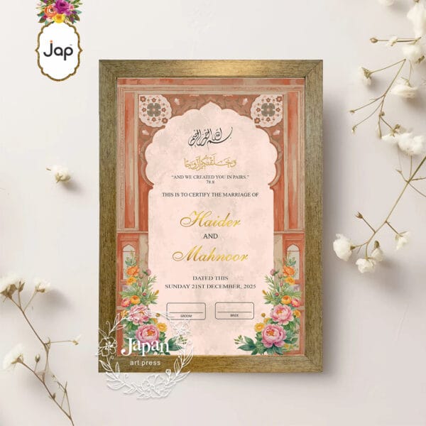 This Nikah Nama shows the beauty of Pakistani and Islamic wedding traditions. It’s a special keepsake that celebrates your marriage and keeps your “Qabool Hai” moment alive forever.